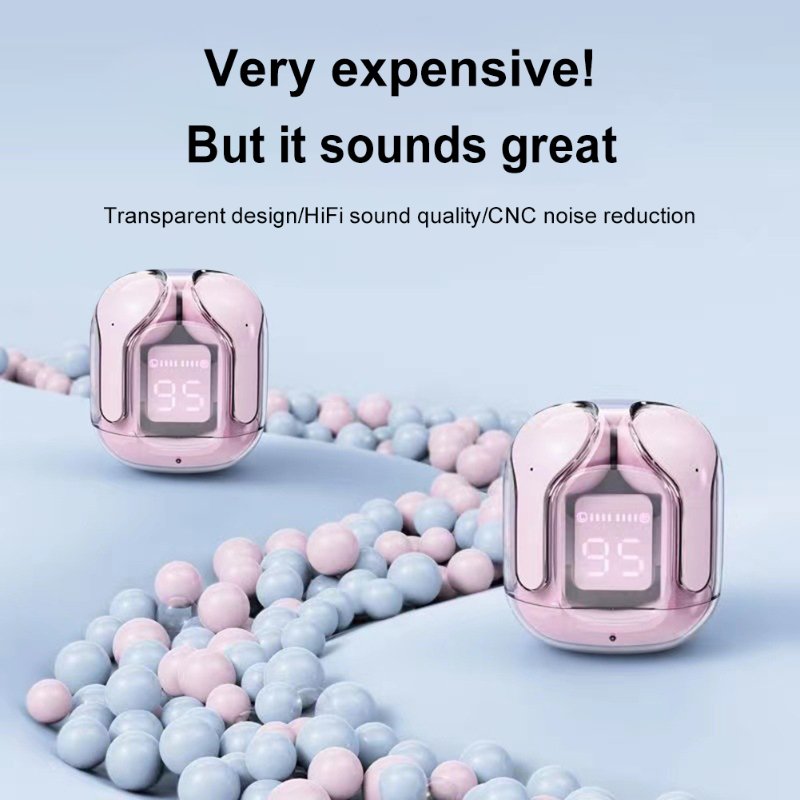 Bluetooth Compatible 5.3 LED Power Digital Display Stereo Sound Transparent Wireless Earbuds