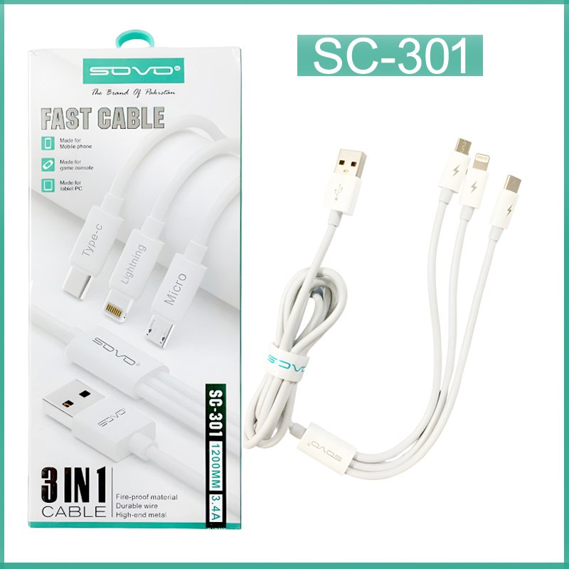 SOVO SC-301 High Quality 3.4A Fast Charge 3-In-1 USB Cable