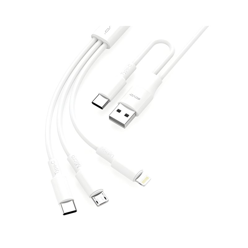 Crafted from environmentally friendly TPE material, this cable provides a comfortable and flexible user experience while maintaining robust tensile strength. Whether you’re charging your device or transferring data, the SOVO SC-301 cable delivers reliable performance, making it an essential accessory for modern tech users.What’s in the box: 1 x 3-in-1 Cable