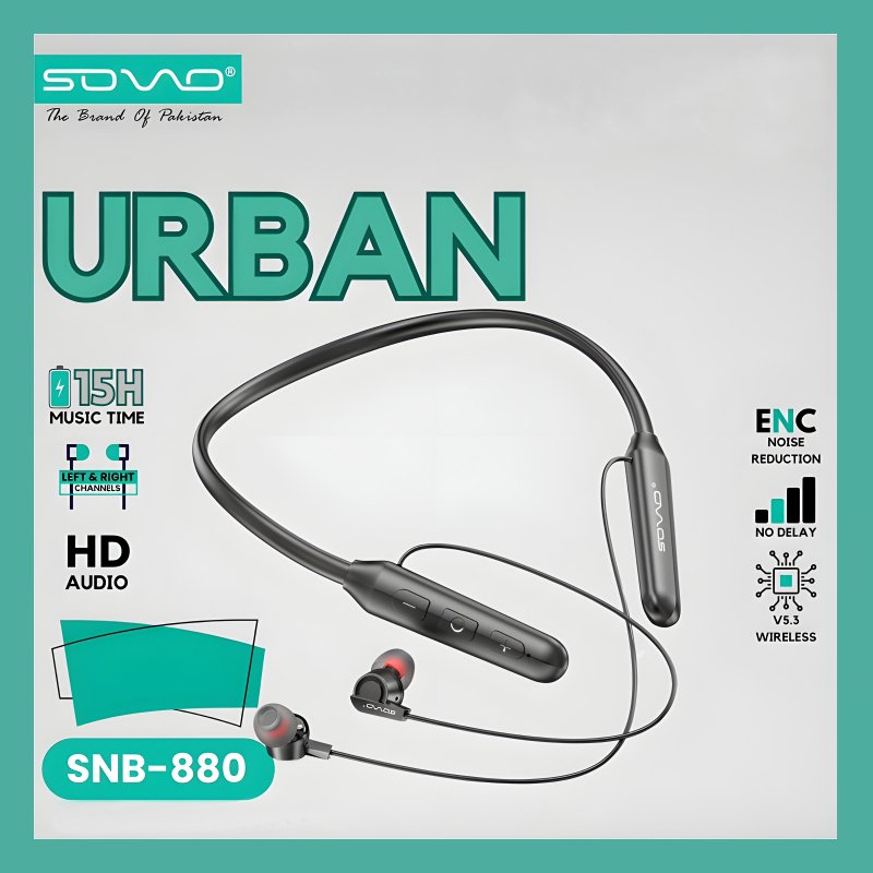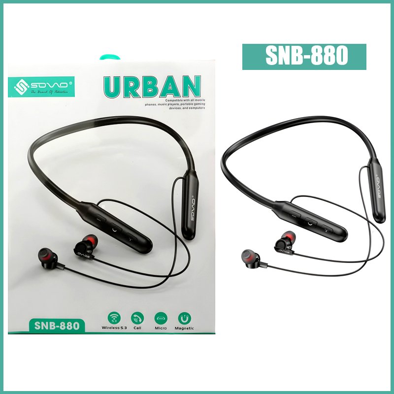 Enhance your music experience with the Sovo SNB-880 Urban Neckband – blending convenience and top-notch sound. This sleek wireless stereo neckband is your perfect on-the-go audio buddy, tailored for your dynamic lifestyle. Elevate your music game effortlessly.