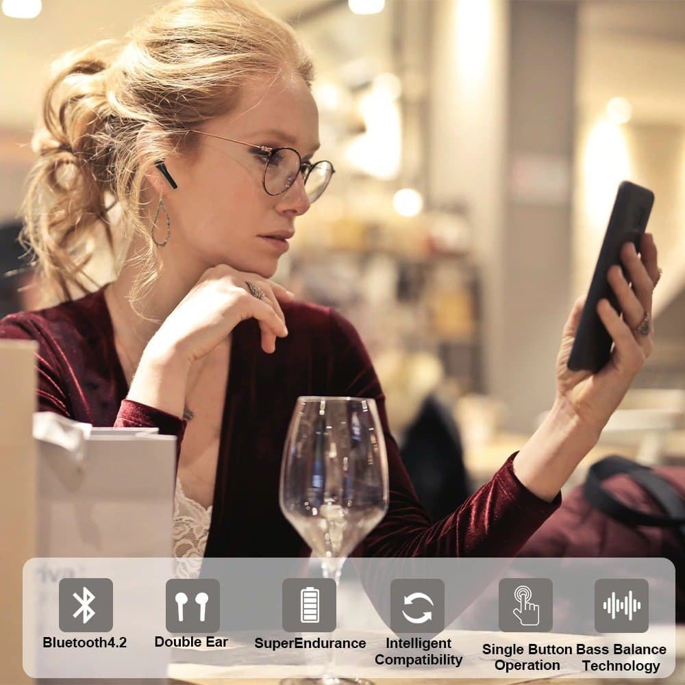 What’s in the box: 2* Mini Bluetooth Earphones 1* Charging Box 1*USB Charging Cable 1* User Manual